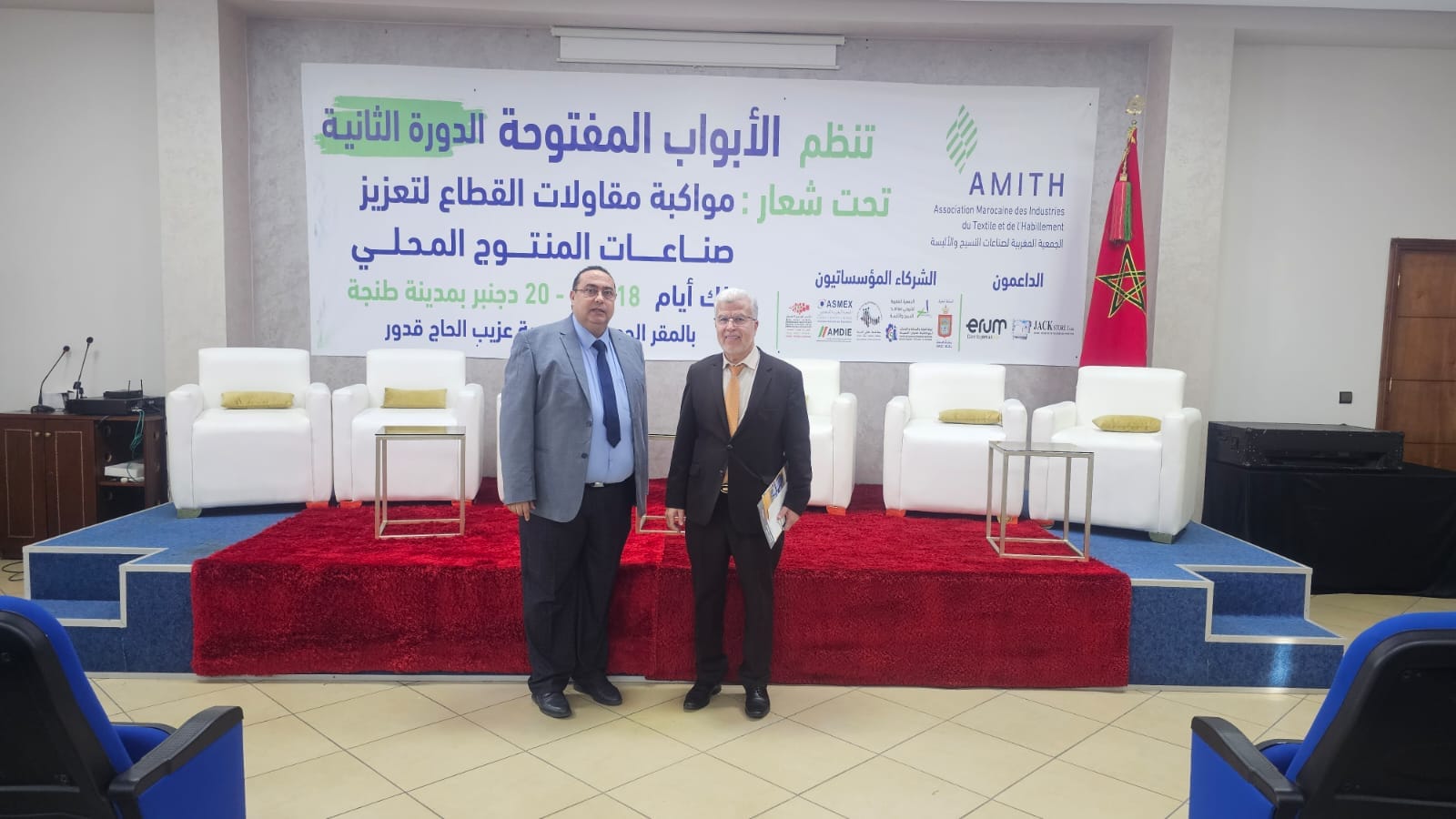 واطر اللقاء كل من: السيد رشيد الصراخ مدير حماية المستهلك ومراقبة السوق والجودة بوزارة الصناعة والتجارة والسيدة أمينة الوزاني رئيسة قسم التخطيط ومتابعة عمليات المراقبة بوزارة الصناعة والتجارة. والسيد عادل ناصر مسؤول العمليات والتكوين بالشباك الوطني الوحيد لتبسيط مساطر التجارة الخارجية PORTNET