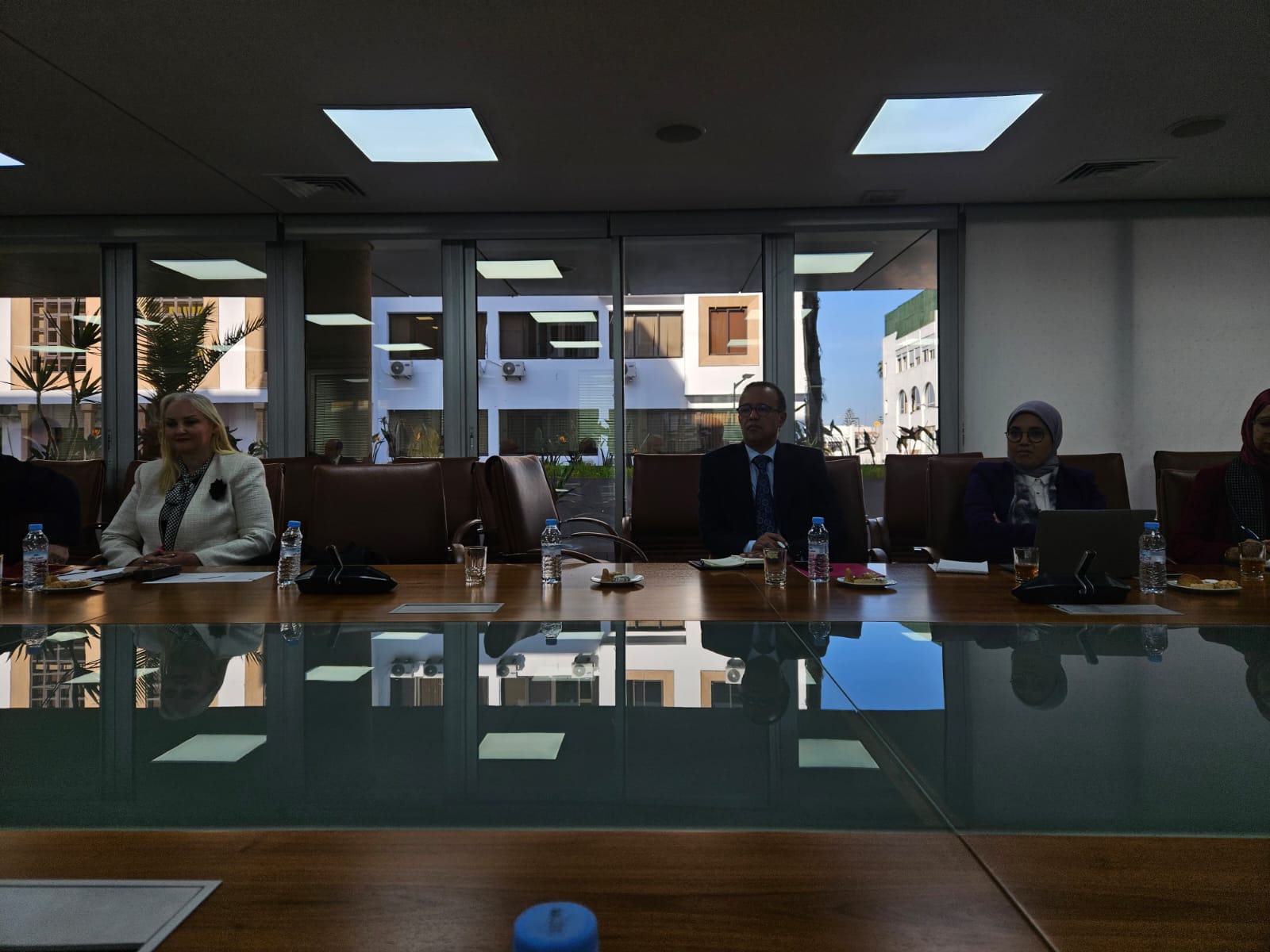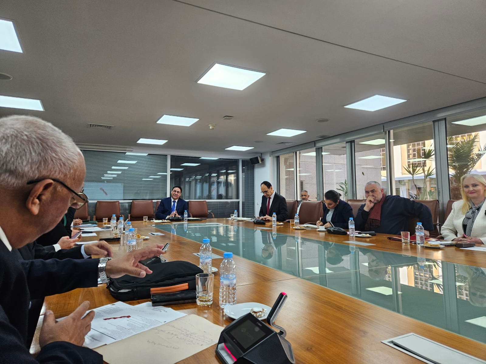 ترأس أشغال هذا اللقاء السيد عبد الحميد الحسيسن نائب رئيس الغرفة، وحضره السادة أعضاء الغرفة: عبدالحفيظ الشركي أمين المال الغرفة وعامر زغينو مقرر لجنة النقل الدولي واللوجستيك وعبد الله بوشتا رئيس لجنة التجارة الداخلية، وعبد الإله جرجور نائب رئيس اللجنة الإقليمية الاستشارية، والسيدة جوهرة الشركي رئيسة لجنة التجارة الالكترونية، والسيدة فاطمة الزهراء بولعيش مقررة لجنة التجارة الالكترونية والسيد منير الحدوثي رئيس لجنة الشؤون الاقتصادية والاجتماعية، والسيد الزبير عزوز رئيس لجنة الاعلام والتواصل. وعن الغرفة حضر كل من: السيد نبيل الخمليشي المدير الجهوي بالنيابة، والسيدة سامية الريفي التمسماني، والسيدة شامة الحداد.